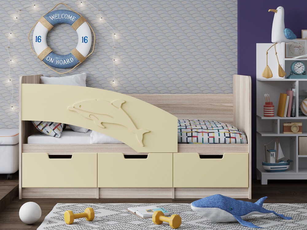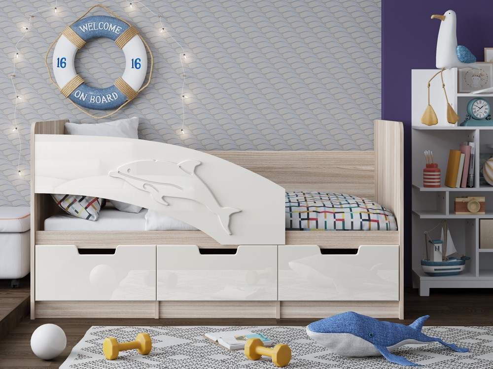 Кровать Дельфинчик-6 МДФ – это усовершенствованная модель Дельфина. Все 3 ящика выкатные, больше не стоит волноваться о ручках, которые могут мешать. Идеальная кроватка для Ваших детей.