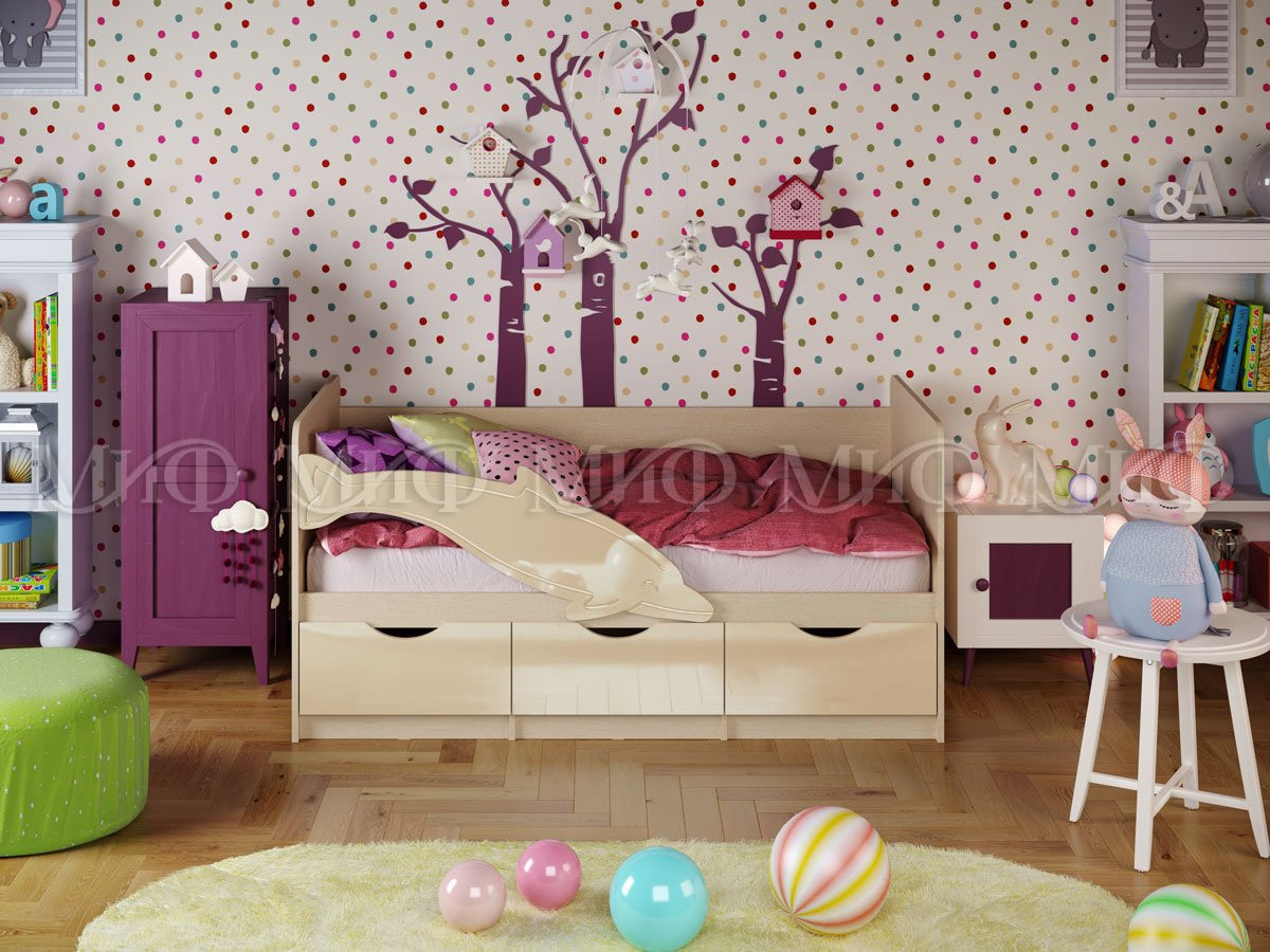 Кроватка Дельфин для Ваших детей благодаря небольшому размеру (длина 1,6м, 1.8м, 2,0 м) компактно разместится в детской комнате, и не займёт игровое пространство. Ящики под кроваткой скроют все коробочки и вещи длительного хранения. Особо радует родителей наличие бортика для безопасного сна. Корпус кроватки выполняется всегда в светлом цвете, а фасады можно выбрать. Даже внешне эта кровать выглядит очень уютной. А ограничительная планка делает ее еще и безопасной. Выбирайте любой цвет фасада для создания гармоничного интерьера.