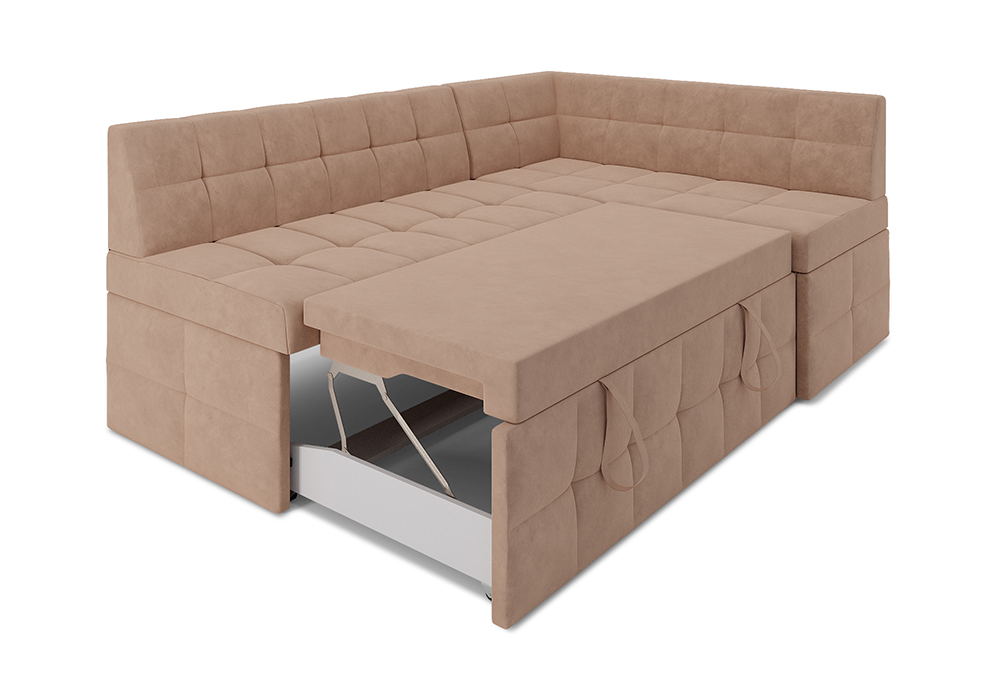 —Кухонный угловой диван дельфин Атлантис велюр бежевый