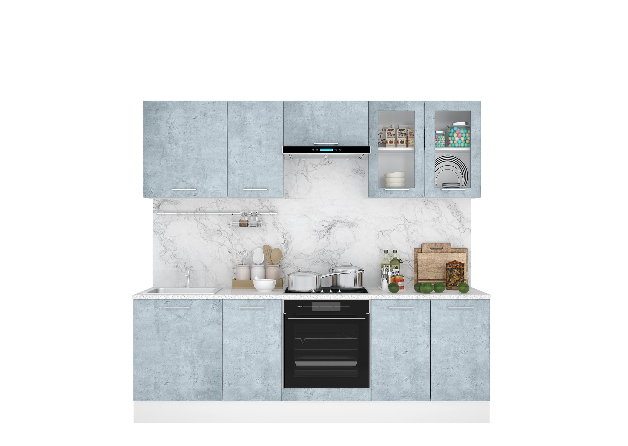 Модули 600, 800 применяются как шкафы под глухие створки, так и под стеклостворки. Столы 50, 60 и 80 также используются как мойки.